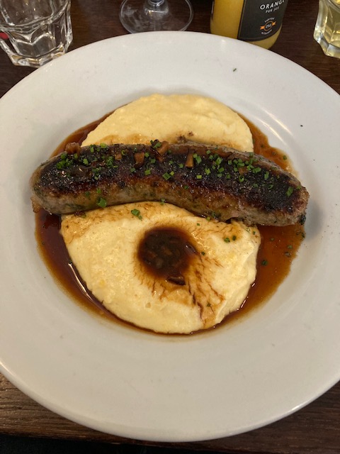 I chose the saucisse, which came on a bed of polenta, but when it turned up, I sort of wished I hadn’t.